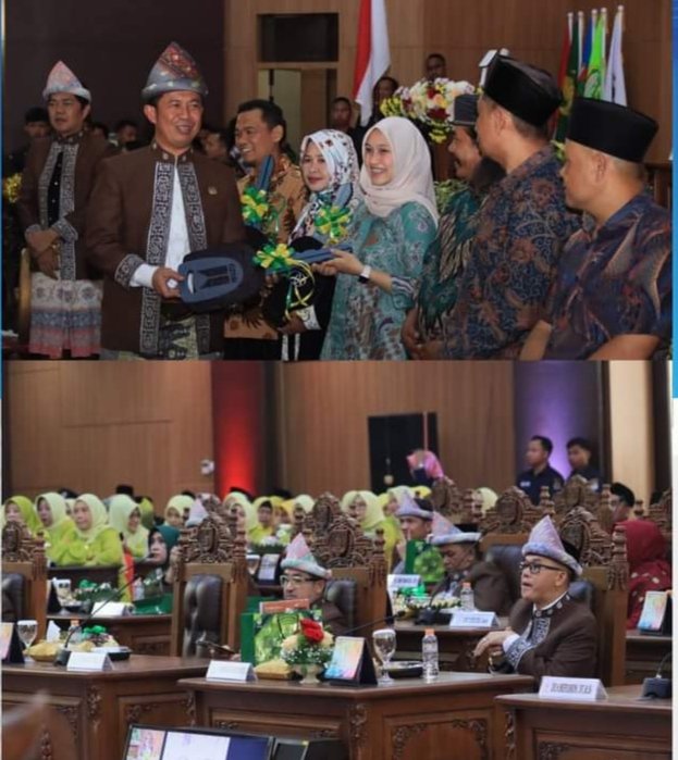 Lubuk Linggau, (Sumatera Update) – Penjabat (Pj) Gubernur Sumatera Selatan (Sumsel), Agus Fatoni bersama Pj Wali Kota Lubuklinggau, H Trisko Defriyansa dan Ketua TP PKK Kota Lubuklinggau, Hj Henita Trisko menghadiri Rapat Paripurna Istimewa DPRD Kota Lubuklinggau dalam rangka memperingati HUT ke-22 Kota Lubuklinggau, Selasa (17/10/2023).