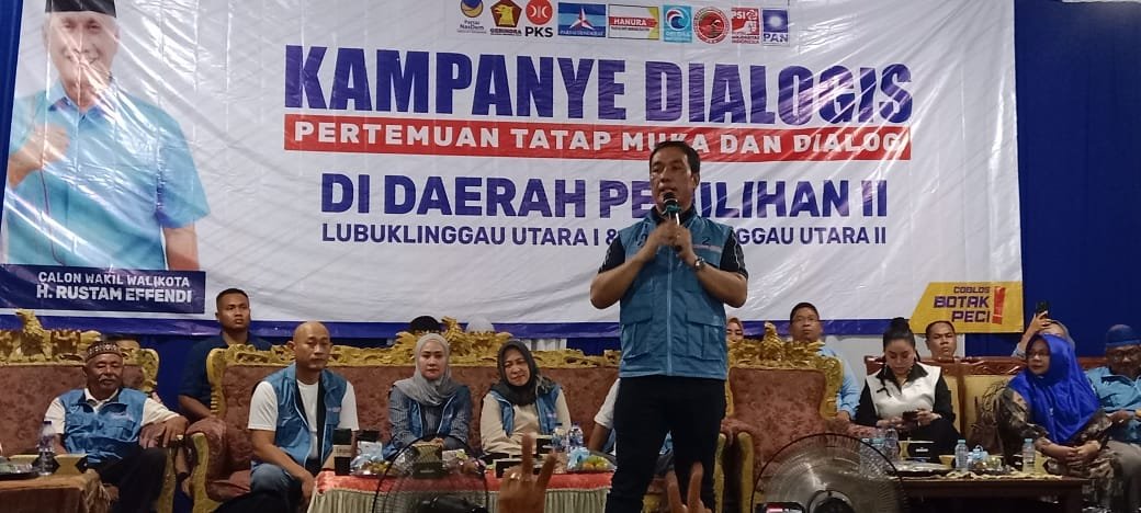 Lubuk Linggau, (Sumatera Update) – Kampanye Dialogis Pasangan Calon (Paslon) Wali Kota dan Wakil Wali Kota Lubuk Linggau, H. Rachmat Hidayat (Yoppy Karim) dan H. Rustam Effendi nomor urut 2 dihadiri langsung oleh H. Fauzi Amro anggota DPR-RI dari fraksi Nasdem.