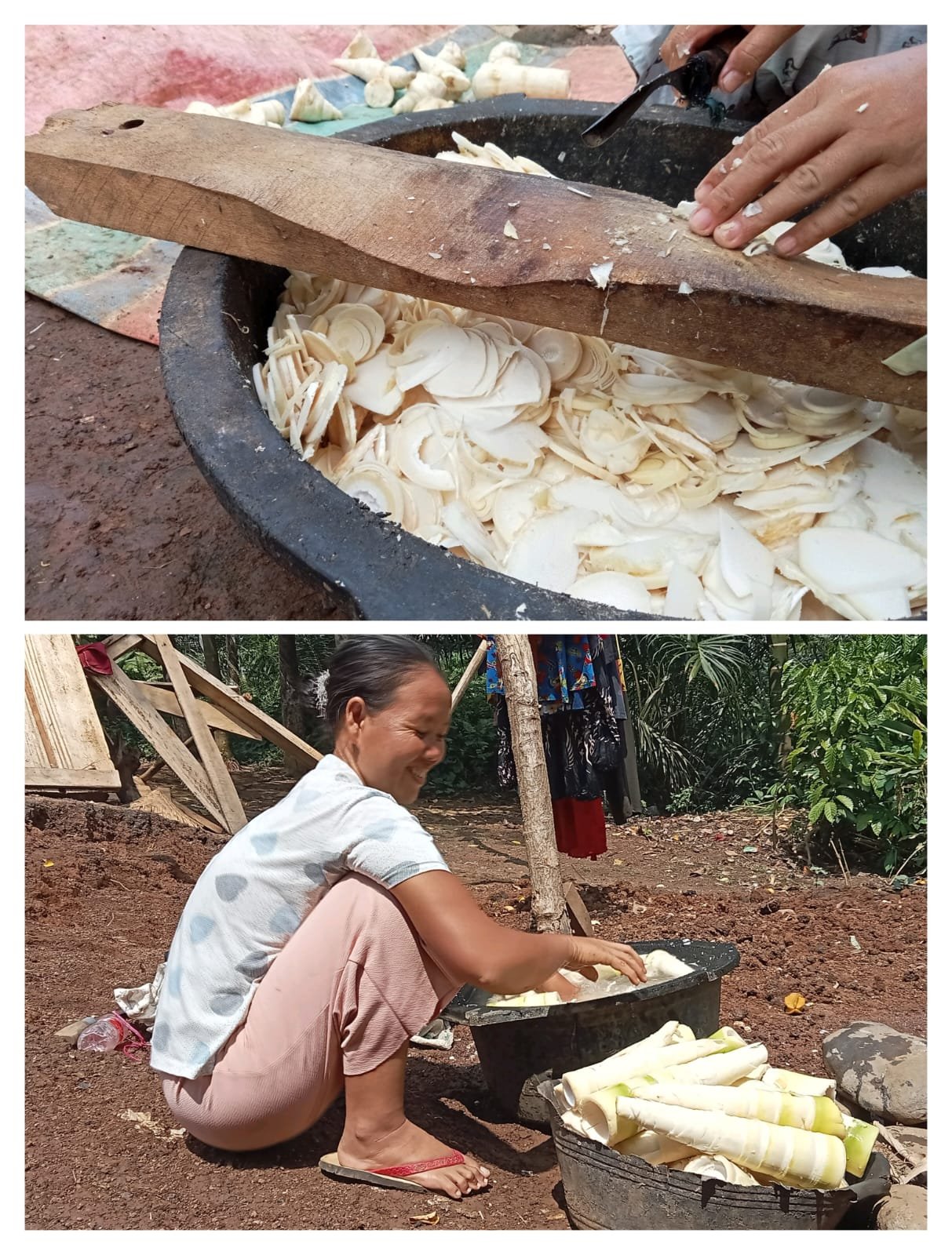 “Setelah dapat rebung, langsung kami kupas, lalu sesampai di rumah tinggal diiris kecil dan direbus. Sebelum dijual, rebusan rebung kami dinginkan dulu dan dibungkus, lalu sore harinya kami sudah bisa jualan di pasar,” kata Salpika.
