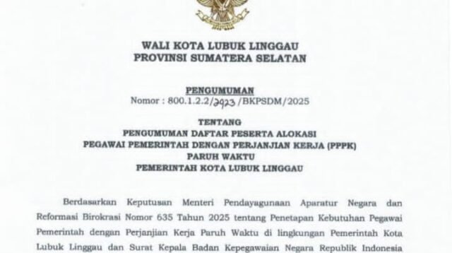 Lubuk Linggau, (Sumatera Update) - Pengumuman Daftar Peserta Alokasi Pegawai Pemerintah dengan Perjanjian Kerja (PPPK) […]