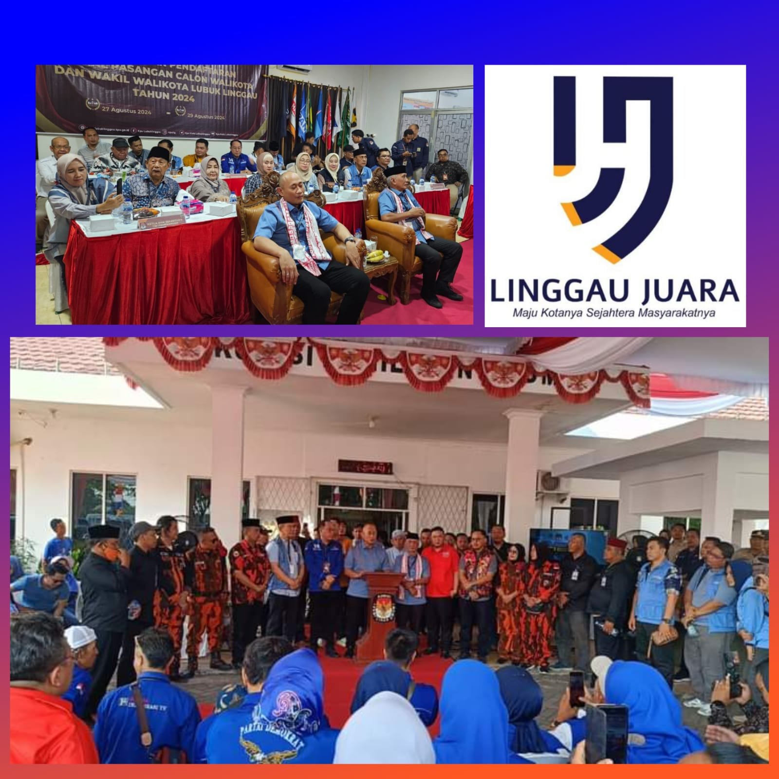 Lubuk Linggau, (Sumatera Update) – Hari pertama pendaftaran Calon Walikota dan Wakil Walikota Lubuk Linggau periode 2025-2030, Selasa 27 Agustus 2024 didahului kedatangan Paslon H. Rachmat Hidayat atau Yoppy Karim dan H. Rustam Effendi, diiringi Ketua Tim Parpol H. Taufik Siswanto dari Partai Demokrat, Ketua Tim Pemenangan H. Eddy Saputra, H. Suhada Ketua DPD PKS, Ketua Hanura Feri Anggriawan, Ketua DPD Gerindra Hendri Juniansyah, parpol pengusung dan pendukung dan relawan.
