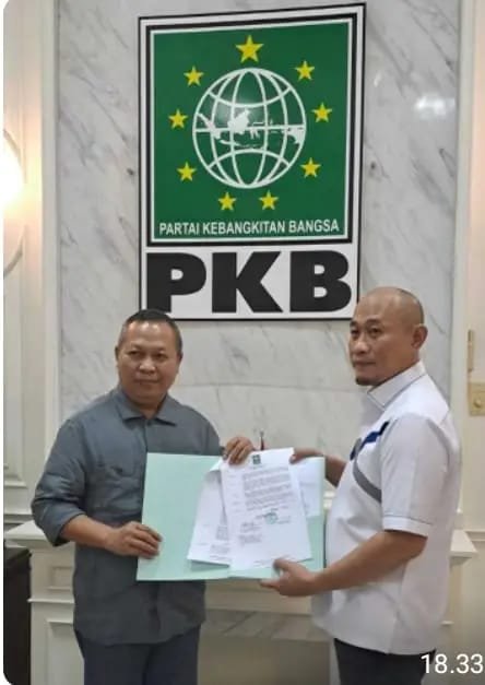 Pemberian SK pasangan tahap 1 pada H. Rachmat Hidayat dan Rustam Effendi, berdasarkan nomor 30129/DPP/01/VI/2024 yang ditandatangani langsung oleh DPP PKB Ketua Bidang Struktur, Eksekutif dan Legislatif, A.Halim Iskandar dan Sekjen PKB M. Hassanudin Wahid di Jakarta, Selasa, (11/6/2024) lalu.