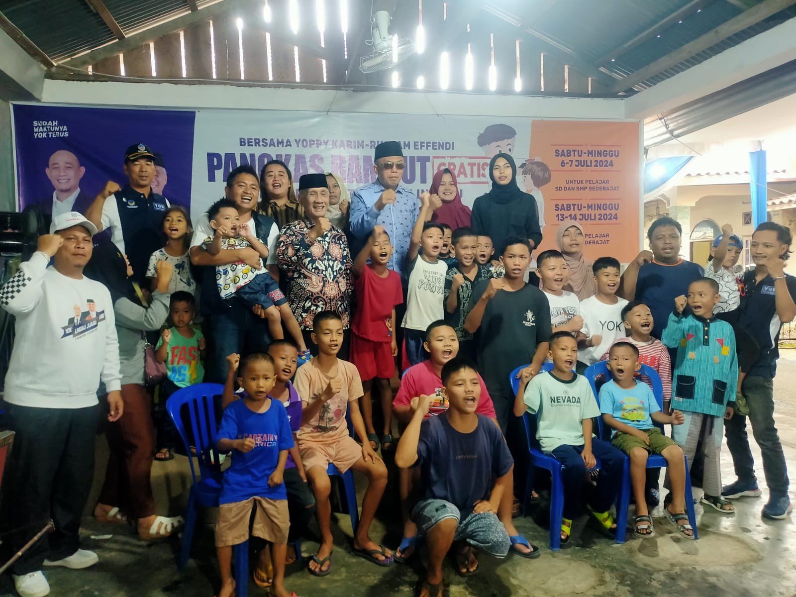 “YOK TERUS cukuran, sebelum masuk sekolah biar anak-anak dan adik-adik ganteng maksimal. Hari ini ada 500 anak dan besok target 500 anak lagi. Untuk pelajar SMA kita laksanakan minggu depan,” ujar Idham yang diketahui merupakan Owner Kopi Adinda G19, Sabtu (6/7/2024).